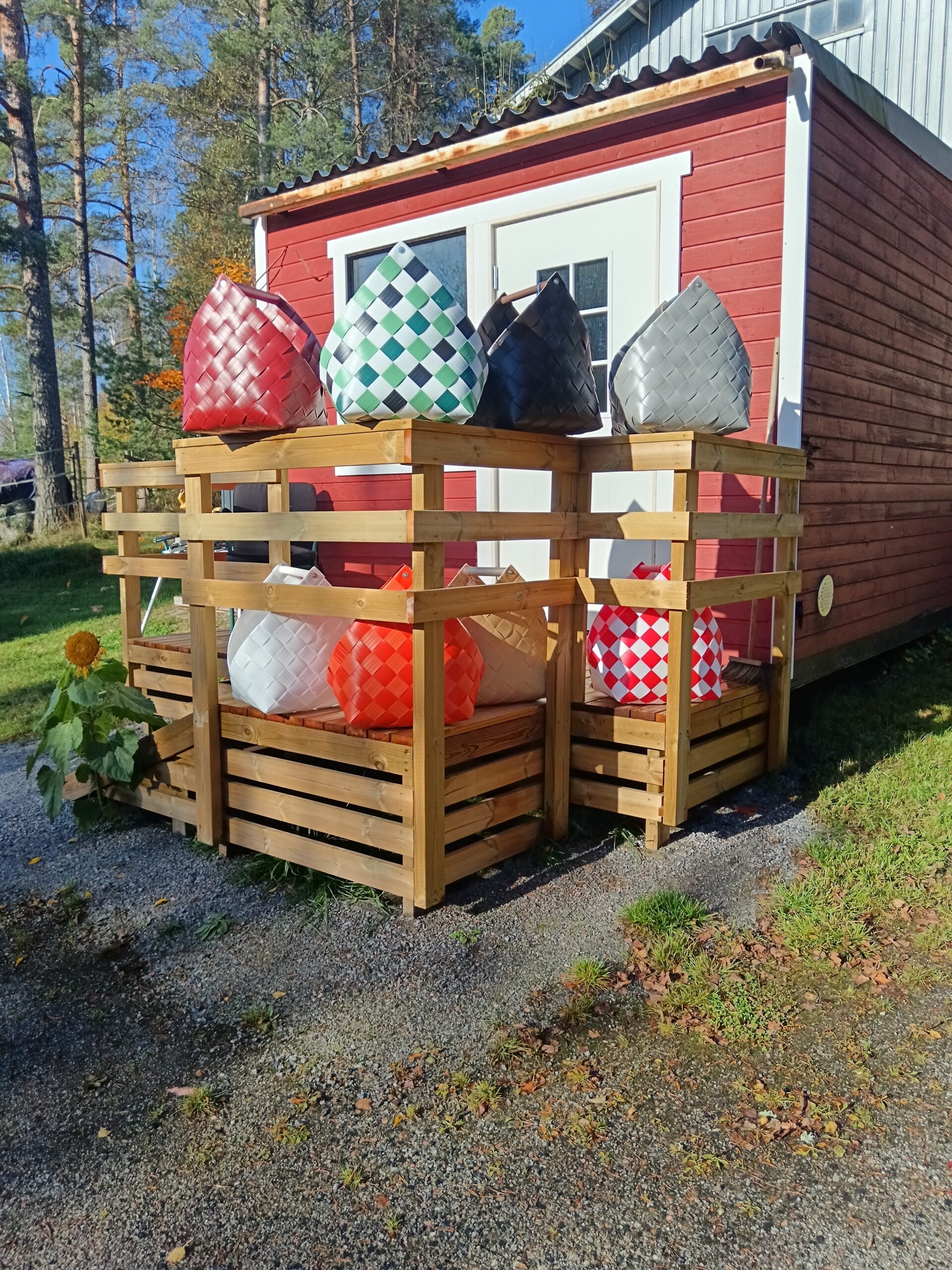 samantien. Jos valokuvagalleriasta ei löydy juuri omaa suosikkiväriäsi/koriasi, niin tiedustele tarkemmin varastosta, sillä kaikista tuotteista ei aina ehdi kuvaa ottaakaan. Mm. puunkantokoreja on tällä hetkellä paljon varastossa, samoin ostoskassikoreja.